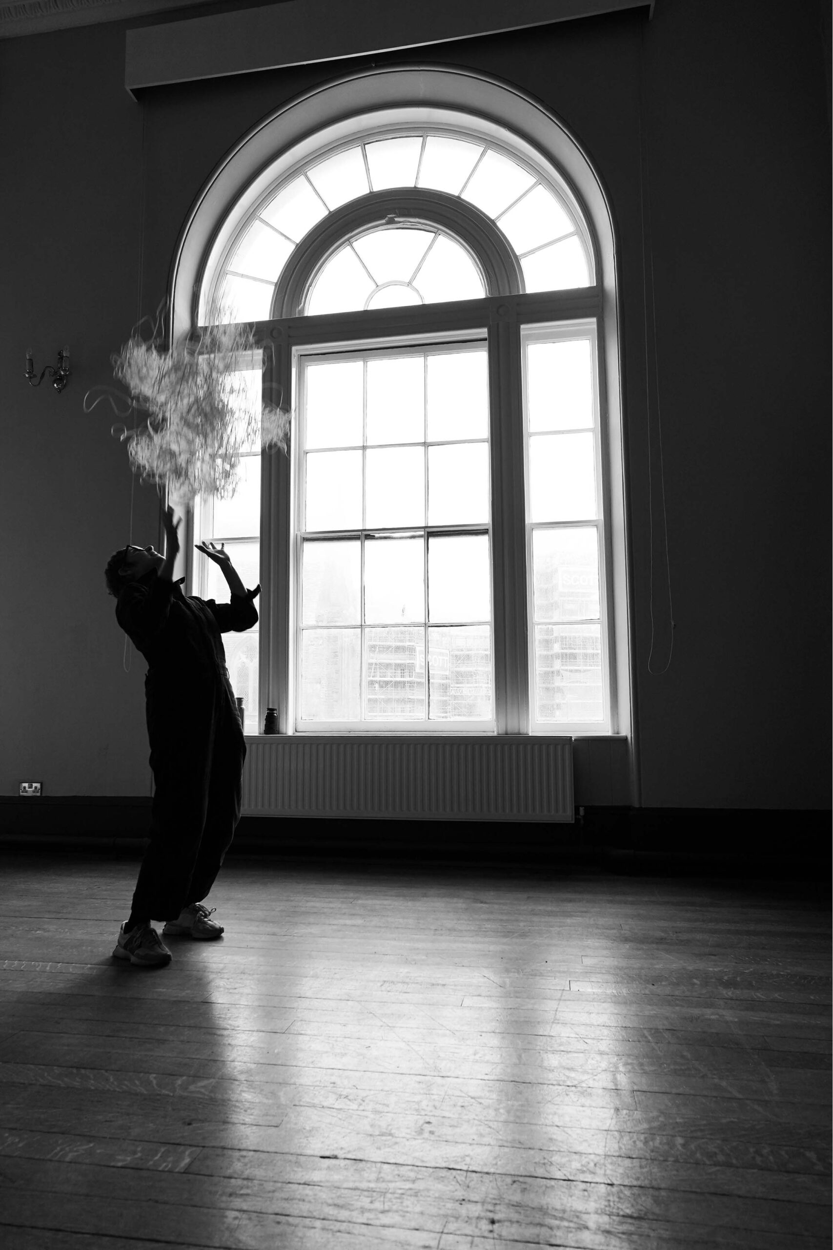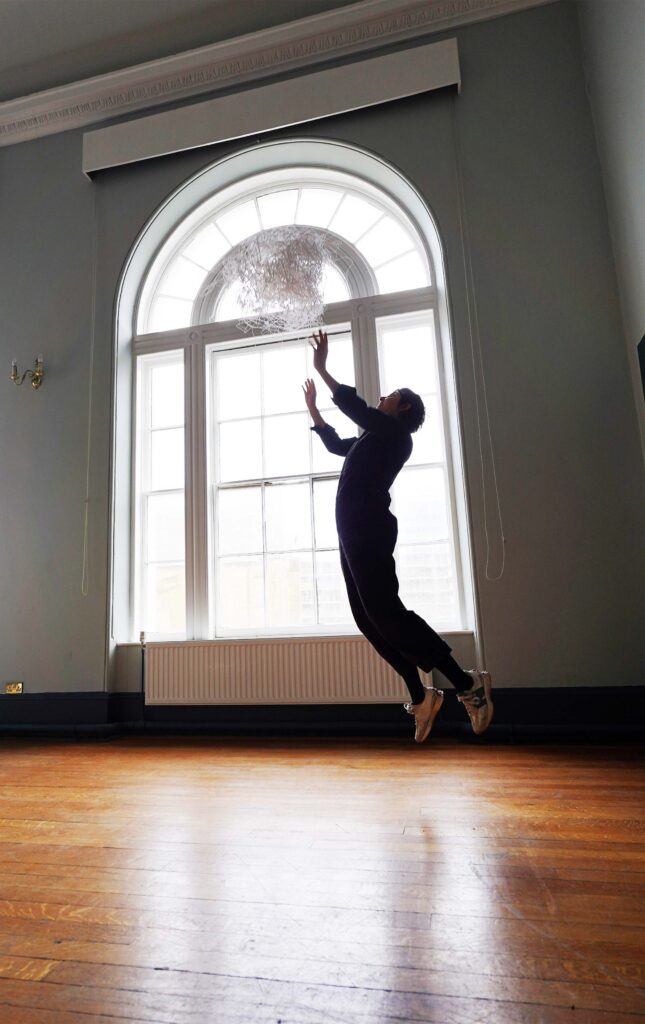 To throw the cloud is to activate the data. The thousands of pin-pricks, once a disciplined exercise in endurance and patience, now become, for a few seconds “lively matter”, embodying the precarious and drifting nature of the digital ‘data cloud’ and the semi- decomposed nature of peat – because of the waterlogged, anaerobic (oxygen-free) conditions, the organic matter doesn’t fully decompose, it doesn’t turn back into soil, and it doesn’t fully disappear. It is “suspended” in ‘limbo’ in a halfway point between life and death, and between a plant and a mineral. In science, this is called incomplete decomposition.